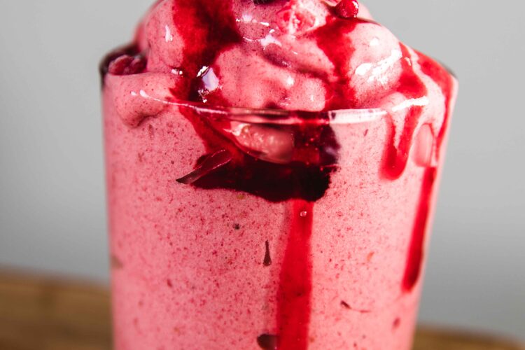 These three are so rich and creamy! If you serve them right away, they have consistency between soft serve and gelato. If you freeze peanut butter and raspberry one, they have the consistency of gelato and the chocolate one has more icy consistency.