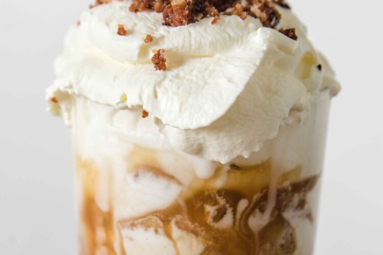This apple milkshake recipe is something else! It is filled with tart cinnamon apples, chewy caramel candy, sweet caramel sauce and crunchy pecans. An absolute MUST TRY if you ask me! And you could call it apple pie milkshake recipe too, which is exactly what it is!