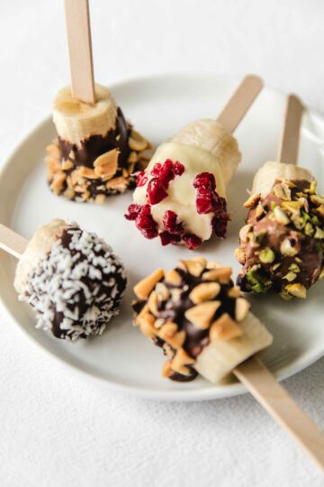 Healthy banana popsicles with toppings