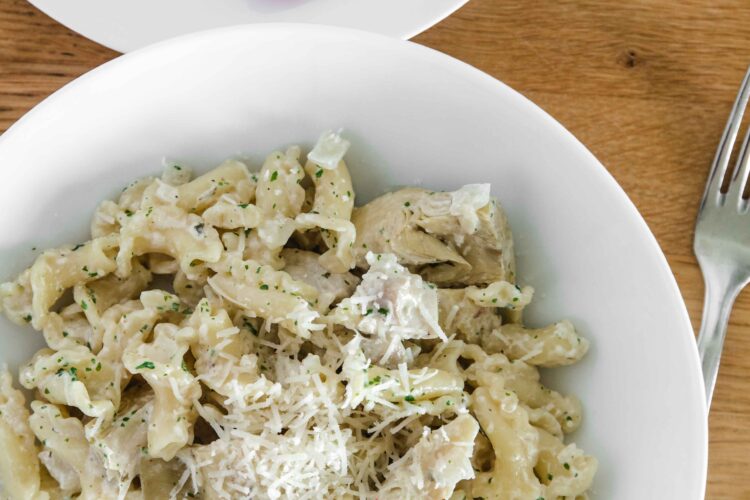 This creamy chicken and artichoke pasta is maybe a little unusual but it tastes just the best! Combination of creamy cheesy sauce with the briny fresh artichokes is a must try!