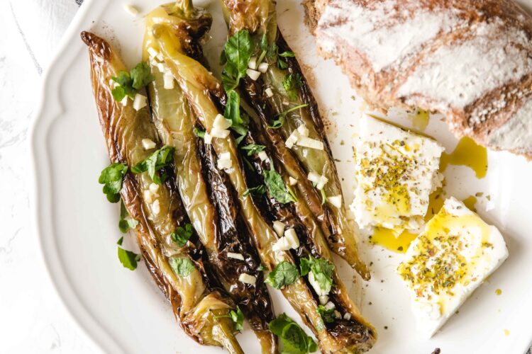 As there are not many ingredients in this fried peppers with feta cheese recipe, choosing good quality ones is important. Look for pointy peppers. Those have thin skin and are perfect for this dish. Bell peppers wont work as well. You can use red, green or yellow. Sometimes I use spicy green peppers just for extra kick.