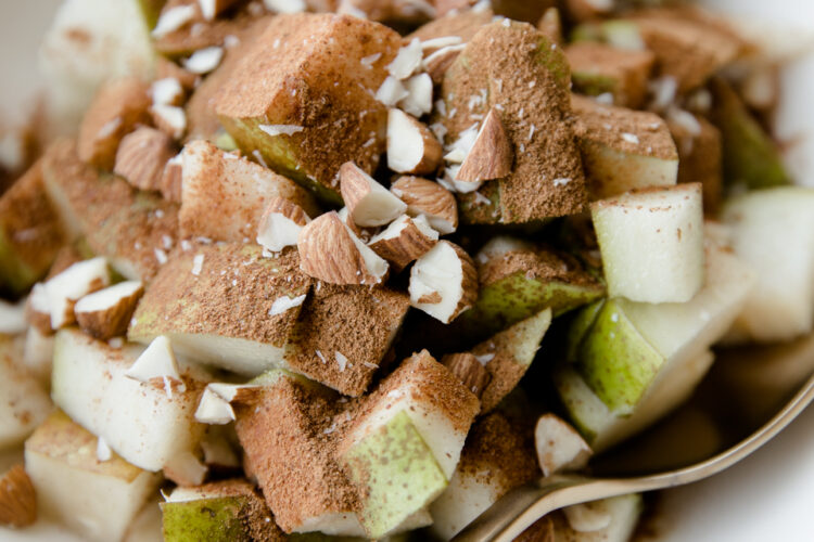 If you like simple snack recipes like this healthy snack with pears and almonds, leave me a comment and let me know!