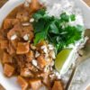 I used butternut squash for this vegan pumpkin soup with ginger, but any pumpkin/squash you prefer will do. You can even use canned pumpkin puree.