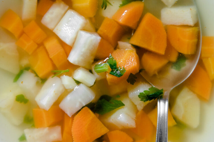 You can use any vegetables you like for this weight loss veggie soup. It tastes great with broccoli, cauliflower, potatoes. But this is my favorite combo – celery and parsley root with carrots and tomatoes. It tastes like a dream!